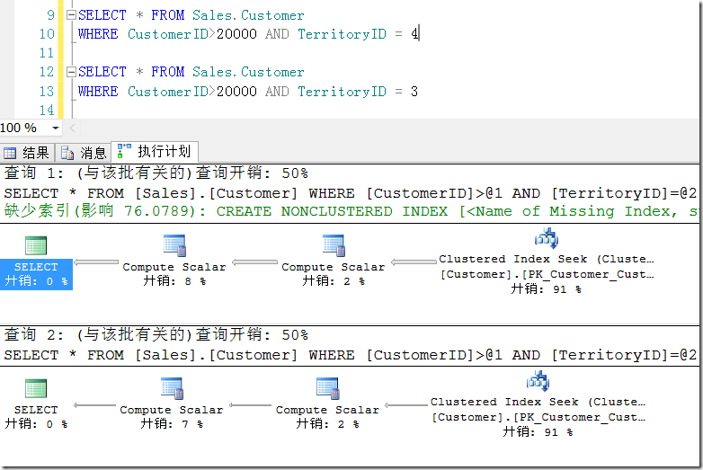 SELECT * FROM Sales.Customer WHERE CustomerID>20000 AND TerritoryID = 4 OPTION (recompile)
