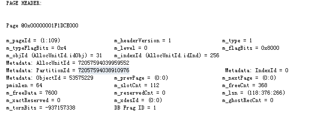 從”ridlock fileid=1 pageid=109 dbid=7 id=lock1f03c7700 mode=X associatedObjectId=72057594038910976“ 這個信息中我們知道ridlock fileid=1 pageid=109 dbid=7