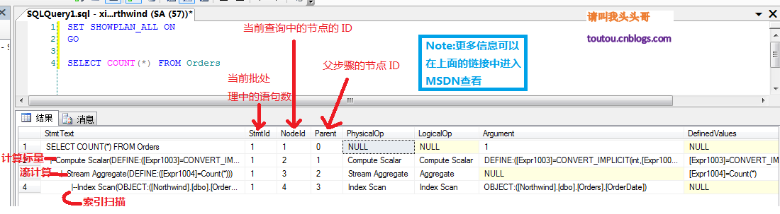 通過(guò)SET SHOWPLAN_ALL ON我們來(lái)看看COUNT()具體做了那些事情: