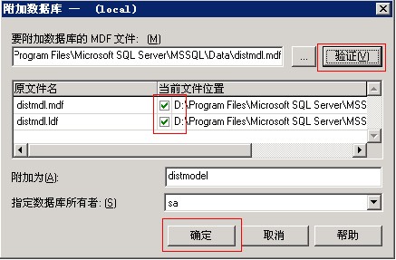 2)然后輸入mdf文件的具體路徑,點(diǎn)擊驗(yàn)證,看到下面出現(xiàn)兩個(gè)綠色勾的時(shí)候說明文件完整,然后填上數(shù)據(jù)庫名(附加為這項(xiàng)),再點(diǎn)擊確定,就附加成功了。