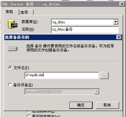 2)在常規(guī)選項(xiàng)卡上點(diǎn)擊添加,再輸入備份文件名,點(diǎn)擊確定即可。
