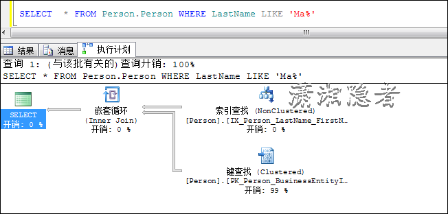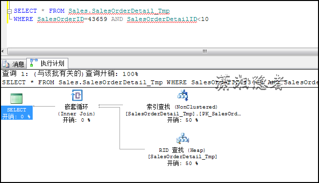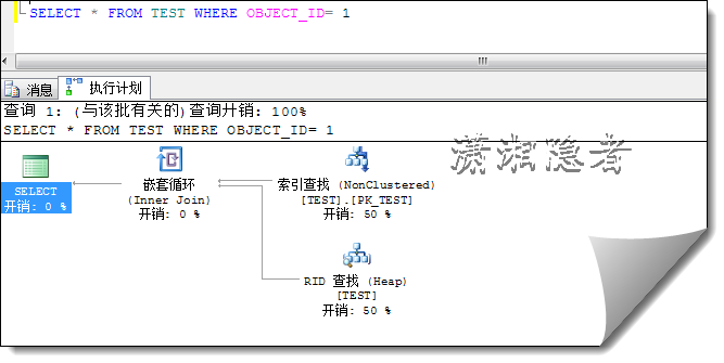 如上所示,當我們查詢OBJECT_ID=1的數(shù)據(jù)時,優(yōu)化器使用索引查找(Index Seek)