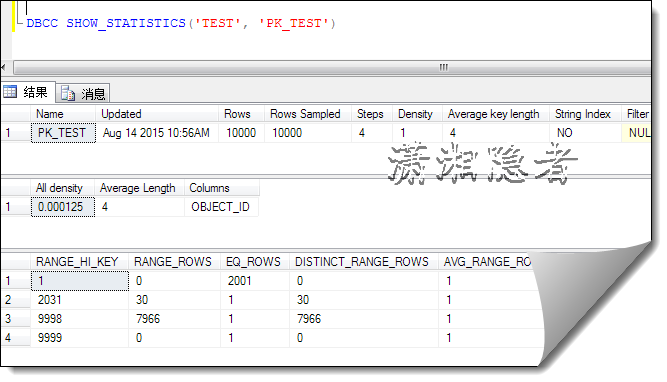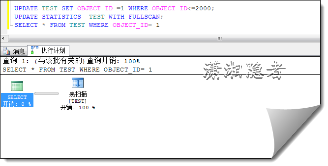 UPDATE TEST SET OBJECT_ID =1 WHERE OBJECT_ID<=2000; UPDATE STATISTICS TEST WITH FULLSCAN; SELECT * FROM TEST WHERE OBJECT_ID= 1