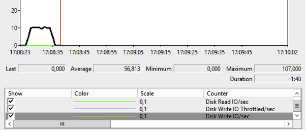 另外Disk Write IO Throttled/sec性能計數(shù)器也會告訴為你資源調(diào)控器的IOPS的限制數(shù)。