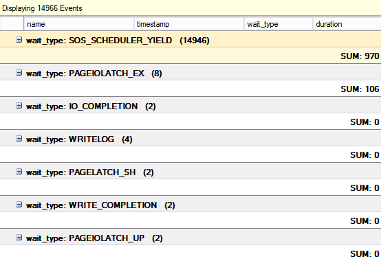 從2個圖中可以看到,2個運行的測試有巨大的區(qū)別,尤其是在PAGEIOLATCH_EX 和 SOS_SCHEDULER_YIELD等待類型。