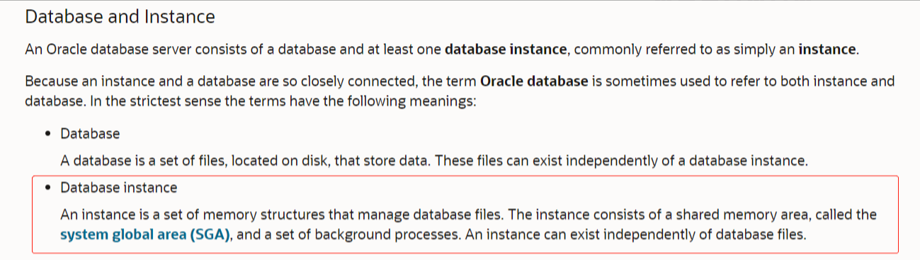 Oracle數(shù)據(jù)庫實例是一組Oracle后臺進程/線程以及在服務器分配的共享內存區(qū)。