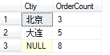 我們會(huì)看到 使用group by all 后,不符合條件的城市也會(huì)出現(xiàn),只是訂單數(shù)是零