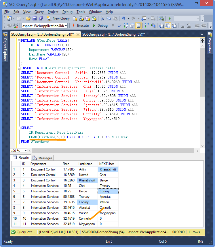 SqlServer2012中LEAD函數(shù)簡(jiǎn)單分析