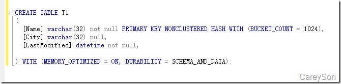 下面我們來看創(chuàng)建一個(gè)內(nèi)存優(yōu)化表: