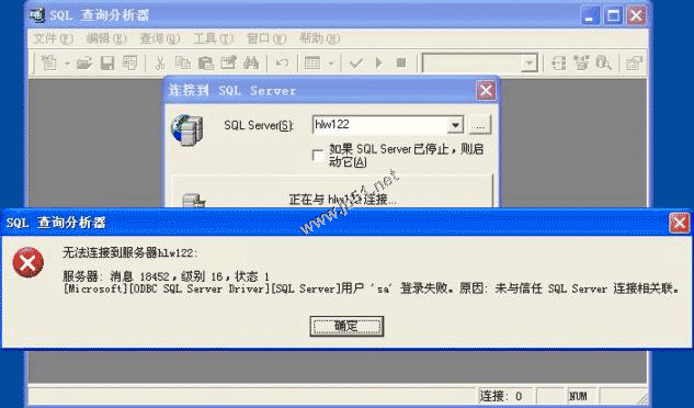 22、安裝過程中沒有提示我設(shè)置“sa”用戶的密碼,所以就是空的,點(diǎn)擊確定,則彈出“無法連接到服務(wù)器”的錯(cuò)誤,如下圖。