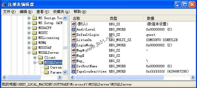 23、不要急,因?yàn)槟氵€沒有與信任SQLSERVER連接相關(guān)聯(lián),這需要稍微修改一下注冊表,在“開始”菜單中選“運(yùn)行”,輸入“regedit”命令,點(diǎn)確定,進(jìn)入注冊表編輯,找到[HKEY_LOCAL_MACHINE]\SOFTWARE\MICROSOFT\MSSQLSERVER\MSSQLSERVER項(xiàng)。