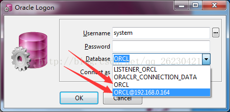 當(dāng)看到Database下拉框中有本地的ORCL以及遠(yuǎn)程的ORCL@192.168.0.164就算成功了!??!