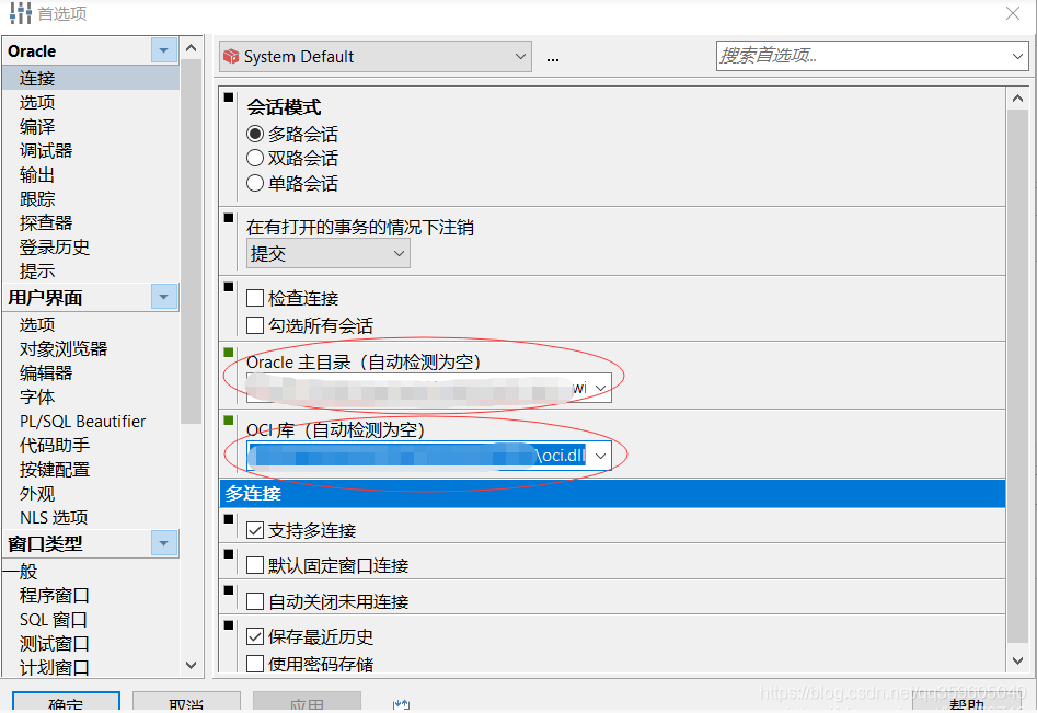 2.添加OCI庫:將Oracle客戶端解壓目錄下oci.dll文件復制為路徑,添加到OCI庫 我本機的oci.dll文件文件位置為:D:\work\java\software\instantclient_19_11\oci.dll