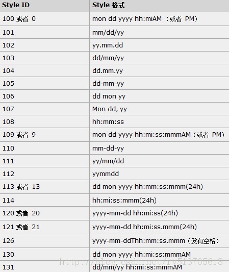 其中,data_type(length)規(guī)定目標(biāo)數(shù)據(jù)類型(帶有可選的長度)data_to_be_converted 含有需要轉(zhuǎn)換的值 style規(guī)定日期時間的輸出格式