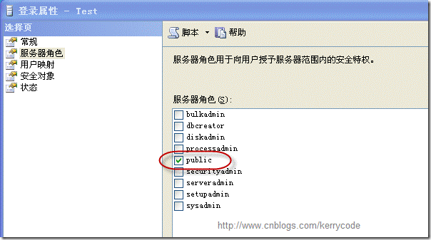 2: 在服務(wù)器角色里面選擇"public"服務(wù)器角色。