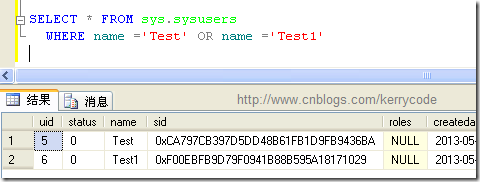 SELECT * FROM sys.sysusersWHERE name ='Test' OR name ='Test1'