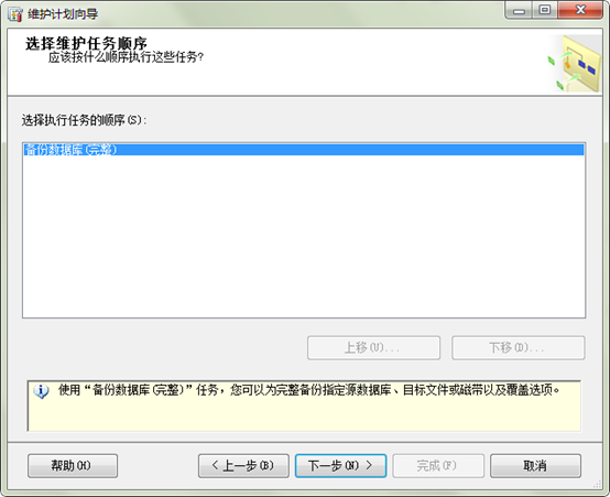 在新窗口中勾選"備份數(shù)據(jù)庫(完整)",然后再點"下一步"