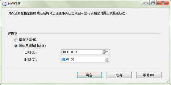 備份是以時間作為還原點,通過選擇不同的"目標時間點"就可以還原到不同的備份上去,如果我們修改了"目標時間點",那么下部的"選擇用于還原的備份集"中被勾選的名稱也會作相應改變。下圖是更改目標時間點的對話框。