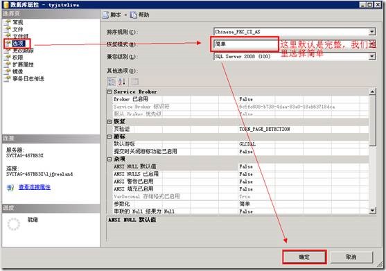 3.如下圖,更改數(shù)據(jù)庫(kù)恢復(fù)模式