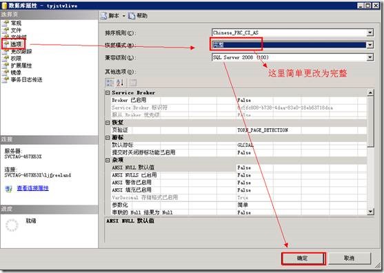 5.如下圖,數(shù)據(jù)庫(kù)恢復(fù)模式修改為完整