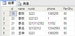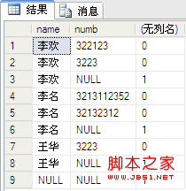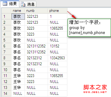 select [name],numb,sum(fenshu) from dbo.PeopleInfo group by [name],numb --2,用group by 查詢所有數(shù)據(jù);