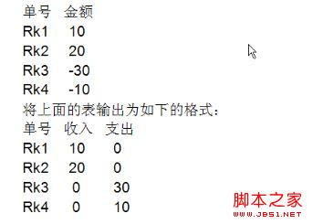 3)可以看出,首先select中應(yīng)該有三個(gè)字段,并且將數(shù)據(jù)大于0的放到收入中,那么另一個(gè)為0,并且將小于0的放到支出里面,另一個(gè)為0,下面我們寫實(shí)現(xiàn)的SQL語(yǔ)句: