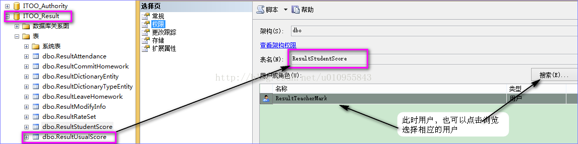 選中其中的一張表,進(jìn)行權(quán)限設(shè)置,必須是剛才設(shè)置時(shí)的數(shù)據(jù)庫,否則是看不到的。