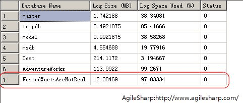 但是,嵌套事務(wù)并不是真正的“嵌套”,對于嵌套事務(wù)來說SQL Server僅僅能夠識別外層的事務(wù)。嵌套事務(wù)是日志不正常增長的罪魁禍?zhǔn)字灰驗(yàn)殚_發(fā)人員以為回滾了內(nèi)層事務(wù),僅僅是回滾內(nèi)層事務(wù)。