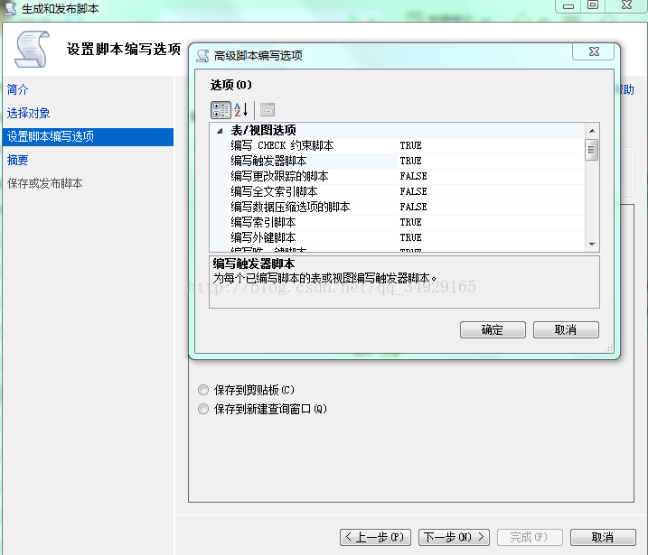 需要注意的是在高級腳本編寫選項(xiàng)中需要選擇好為2008R2版本生成的全庫腳本,將索引觸發(fā)器等選項(xiàng)一并選擇true.