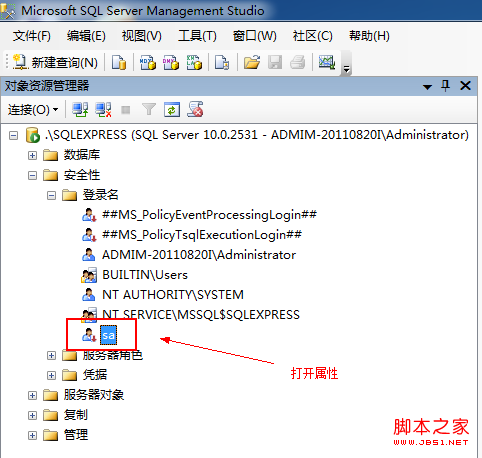 2、登錄名——雙擊sa(打開(kāi)屬性)