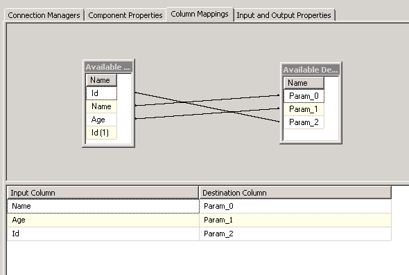 這里的參數(shù)值都是用?號來代替,之后在Column Mappings這個Tab中設(shè)置代替值實(shí)際代替的列,如下圖: