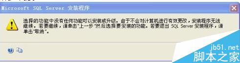 一:安裝sql server 2005過程中出現(xiàn)如下問題:“選擇的功能中沒有任何功能可以安裝或升級(jí)”: