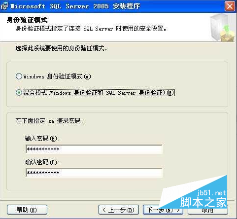 10.選擇身份驗(yàn)證模式,一般選擇混合模式,然后設(shè)置sa用戶密碼,此密碼是安裝完成后sa登錄的密碼。