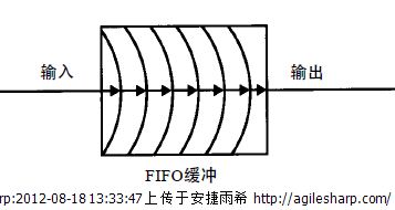 “緩存”和“內(nèi)存”有時可以互換使用。然而,磁帶驅(qū)動器中的內(nèi)存通常并不是緩存,而是緩沖。雖然它們的物理組成是一樣的,但緩沖只起臨時存儲數(shù)據(jù)的作用,由此數(shù)據(jù)從一個位置或設(shè)備傳到另一個位置或設(shè)備。一般地,緩沖是在生命期較短的進(jìn)程控制下工作,一旦數(shù)據(jù)傳輸完畢,這些進(jìn)程將立即釋放內(nèi)存地址。一種常見類型的緩沖是F I F O緩沖,即一種先進(jìn)先出結(jié)構(gòu),其結(jié)構(gòu)如圖所示: