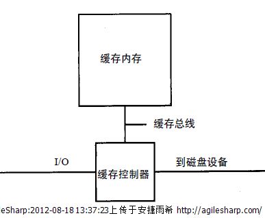 緩存算法既可以在主機(jī)軟件中實(shí)現(xiàn),也可以在存儲子系統(tǒng)或在主機(jī)控制器中實(shí)現(xiàn)。當(dāng)緩存由一塊電子線路實(shí)現(xiàn)時,它被稱為緩存控制器,除了管理磁盤緩存內(nèi)存中的內(nèi)容外,它還可以控制子系統(tǒng)中的磁盤操作,這些操作的細(xì)節(jié)是下一章的主要論題。圖顯示了帶有一個緩存控制器和緩存內(nèi)存的磁盤緩存結(jié)構(gòu):