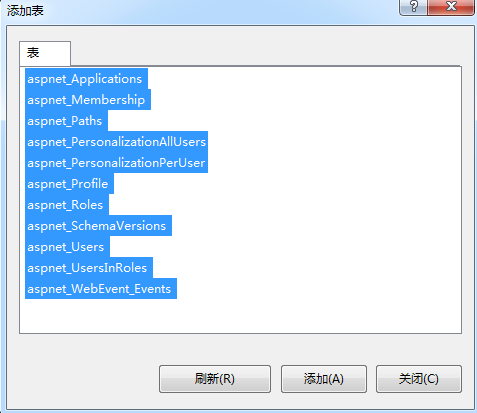 這個(gè)時(shí)候會(huì)跳出一個(gè)添加表對(duì)話框,這里我們可以選擇我們想要的表,如果想要全部選中,則這樣操作,先鼠標(biāo)點(diǎn)重第一個(gè)然后按住shift+鼠標(biāo)點(diǎn)重最后一個(gè),來(lái)完成操作。最后表格位子整理一下,然后ctrl+s保存一下,數(shù)據(jù)關(guān)系圖的名字,那么數(shù)據(jù)庫(kù)關(guān)系圖基本建立好了。接下來(lái)就是分析了。