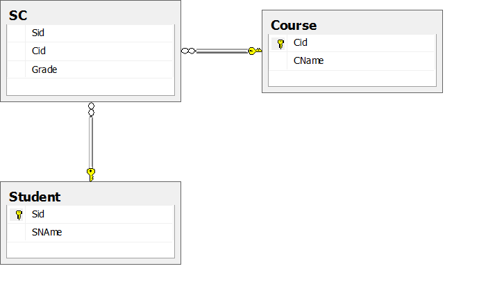 我自己定義是一個(gè)學(xué)生選課的關(guān)系圖: sql腳本代碼如下: