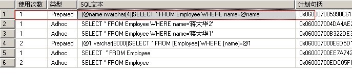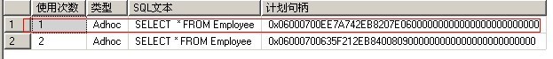 結(jié)果又新添加一個執(zhí)行計劃,即SQL SERVER認(rèn)為這是兩個不同的SQL語句并分別建立了執(zhí)行計劃;