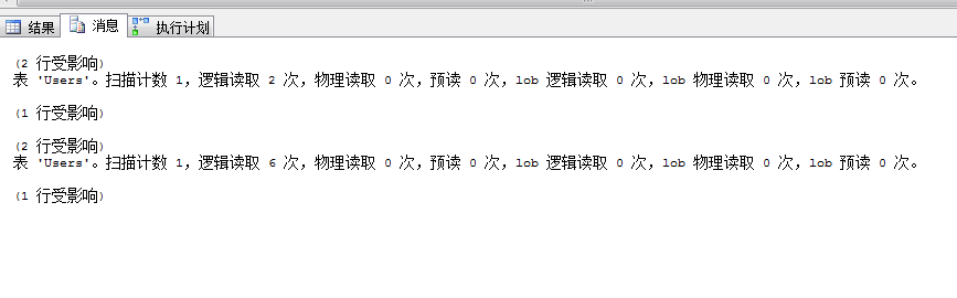 --這是我們現(xiàn)在使用的索引create index IX_UserName on Users(UserName) 打開IO統(tǒng)計(jì)并執(zhí)行下面兩個(gè)查詢