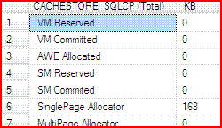 Select Count(*) CNT,sum(size_in_bytes) TotalSize From sys.dm_exec_cached_plans 查詢結(jié)果:共有4條執(zhí)行計劃被緩存。它們共占用內(nèi)存: 172032字節(jié) = 168KB。