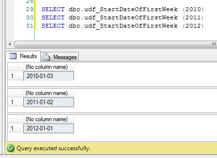 GO CREATE FUNCTION udf_StartDateOfFirstWeek