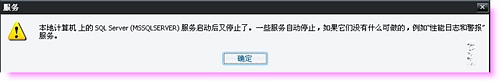 3.出現(xiàn)“本地計(jì)算機(jī)上的MSSQLSERVER服務(wù)啟動(dòng)后又停止了。一些服務(wù)自動(dòng)停止,如果它們沒(méi)有什么可做的”