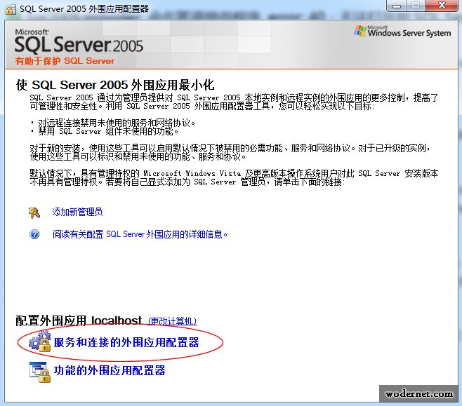 4、配置“SQL Server 外圍應(yīng)用配置器”是允許進(jìn)行遠(yuǎn)程連接的,在開始菜單找到Microsoft SQL Server 2005——配置工具——SQL Server 外圍應(yīng)用配置器并打開,