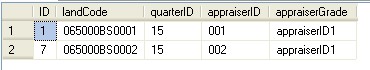 select dbo.appraiser.quarterID,dbo.landUndertake.landcode,case dbo.landUndertake.appraiserGrade when 'appraiserID1' then dbo.landundertake.appraiserID else null END as appraiserID,case dbo.landUndertake.appraiserGrade when 'appraiserID2' then dbo.landundertake.appraiserID else null END as appraiserID1