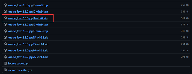 下載地址:Releases · laurenz/oracle_fdw · GitHub