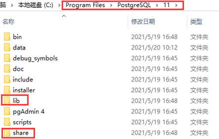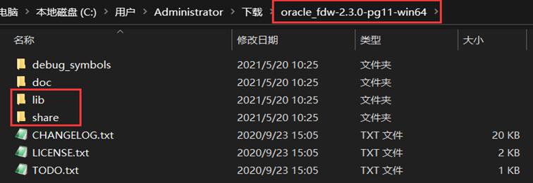 3、解壓oracle_fdw,將【lib】和【share/extension】文件夾中文件拷貝到PG庫安裝路徑下對應的【lib】和【share/extension】文件夾中。