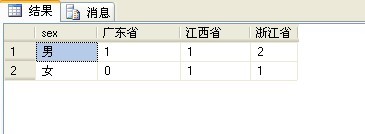 答案是:select sex ,count ( case province when '廣東省' then '廣東省' end )as 廣東省 ,count ( case province when '江西省' then '江西省' end )as 江西省 ,count ( case province when '浙江省' then '浙江省' end )as 浙江省 from student group by sex