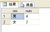 2.select sex, count (*) as num from student group by sex (查詢表中男女?dāng)?shù)量)