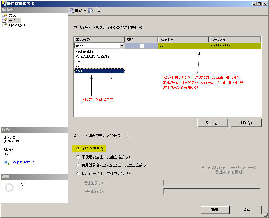 注意:必須以數(shù)據(jù)庫管理員身份登錄(通常也就是sa帳號)后,才可以創(chuàng)建"鏈接服務(wù)器"