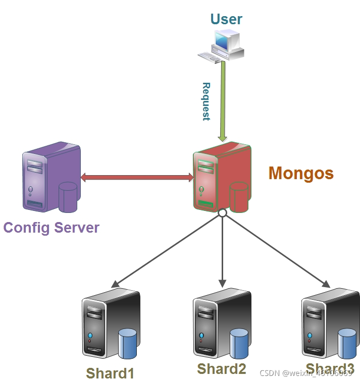 分片就是把數(shù)據(jù)分成塊,再把塊存儲(chǔ)到不同的服務(wù)器上,MongoDB的分片是自動(dòng)分片的,當(dāng)用戶(hù)發(fā)送讀寫(xiě)數(shù)據(jù)請(qǐng)求的時(shí)候,先經(jīng)過(guò)mongos這個(gè)路由層,mongos路由層去配置服務(wù)器請(qǐng)求分片的信息,再來(lái)判斷這個(gè)請(qǐng)求應(yīng)該去哪一臺(tái)服務(wù)器上讀寫(xiě)數(shù)據(jù)。